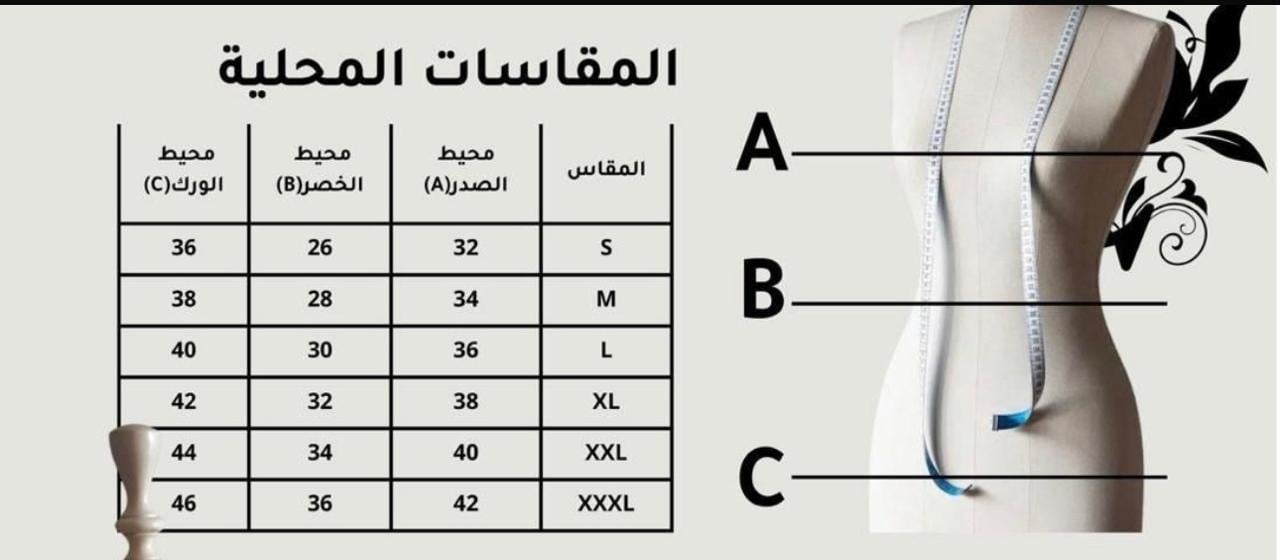 جدول المقاسات